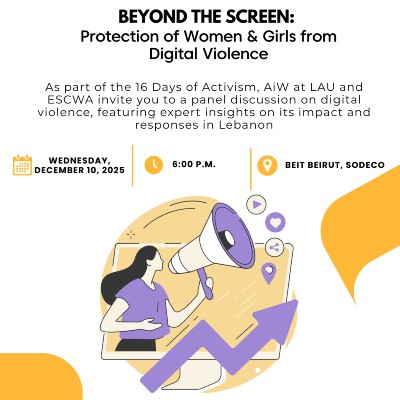 Dr. Abirafeh participated in several sessions at the conference including a plenary session entitled “The Power of Breaking Barriers: Systemic change, individual gain” and Moufeeda Haidar participated in the session “Beyond the #hashtag: Power and women’s movements in the era of #metoo”.